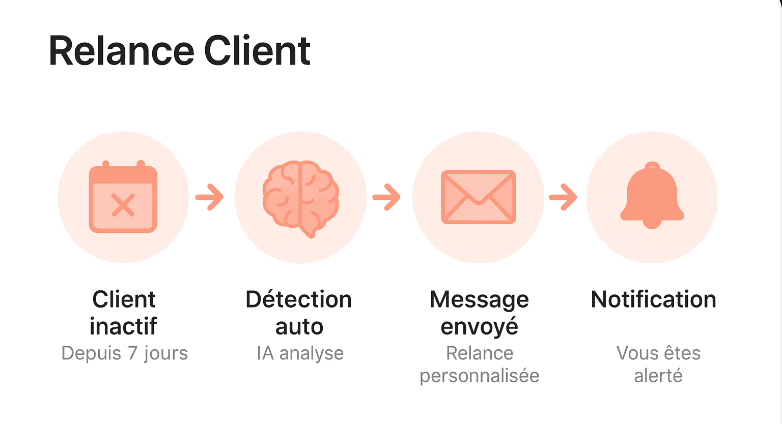 De la gestion d'agenda aux relances clients, vos assistants IA prennent en charge les tâches répétitives pour vous libérer du temps.